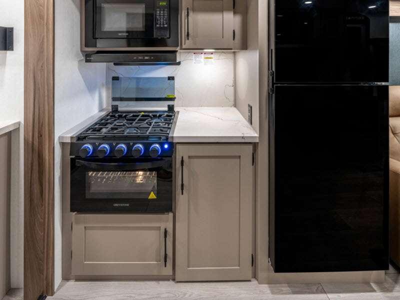Sleeps 2 Slides 2 Length 31 ft 11 in Ext Width 8 ft Ext Height 10 ft 10 in Int Height 6 ft 6 in Interior Color Chocolate Hitch Weight 700 lbs GVWR 8800 lbs Dry Weight 6570 lbs Cargo Capacity 2230 lbs Fresh Water Capacity 45 gals Grey Water Capacity 62 gals Black Water Capacity 32 gals Tire Size 15" Furnace BTU 30000 btu Available Beds Queen Refrigerator Type 12V Refrigerator Size 10 cu ft Cooktop Burners 3 Number of Awnings 1 Axle Weight 5870 lbs LP Tank Capacity 30 lbs Water Heater Type On demand tankless AC BTU 13500 btu Awning Info 19' Power w/LED Lighting Axle Count 2 Number of LP Tanks 1 Shower Type Standard Electrical Service 30 amp Similar Floorplans